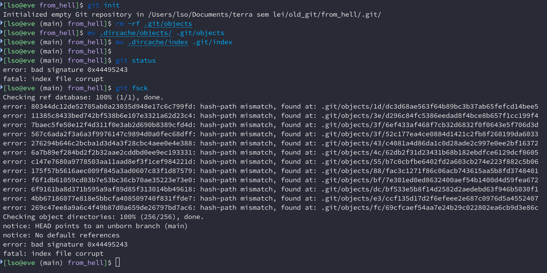 Primeiramente, inicializei um repositório com init-db. Ele me mostrou uma