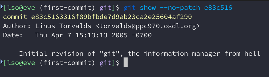 O primeiro commit é fácil de encontrar, mas e quanto à última versão lançada por Linus Torvalds? Precisamos ir um pouco mais fundo na história do Git e no histórico de Git do Git para encontrar o que aconteceu.